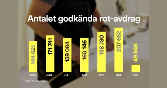 Regeringen meddelade i samband med budgetpropositionen för 2026 att den tillfälliga höjningen av rot-avdraget inte förlängs efter årsskiftet.