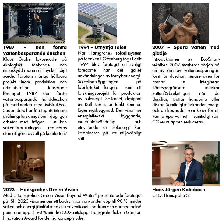 — Vi har varit trendsättare inom vattenanvändning i 125 år och kommer fortsätta det i årtionden framöver. Som pionjär inom badrumsdesign är vi innovativa med fokus på hållbara material och digitala lösningar, säger Hans Jürgen Kalmbach.