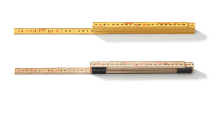 Traditionella tumstockar kan vara svåra att använda när ytan inte är helt jämn eller när korta mått ska mätas. Contact-Meter löser detta med en unik design där den metriska skalan är placerad på motsatt sida av stickan. Det innebär att stickan alltid ligger i kontakt med underlaget, även när den inte är helt utvikt, och gör mätningen mer exakt.